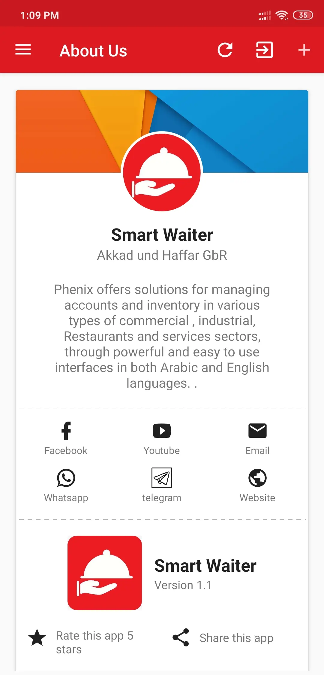 قامت شركة Phenix GmbH ببناء تطبيق Phenix Smart Waiter كتطبيق تجاري. هذه الخدمة مقدمة من Phenix GmbH ومخصص للاستخدام كما هو.